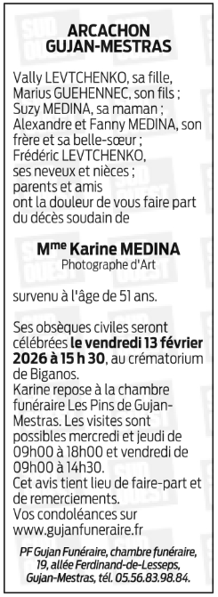 Décédée à Gujan-Mestras (33470, France) le mercredi 4 février 2026 à l'âge de 51 ans